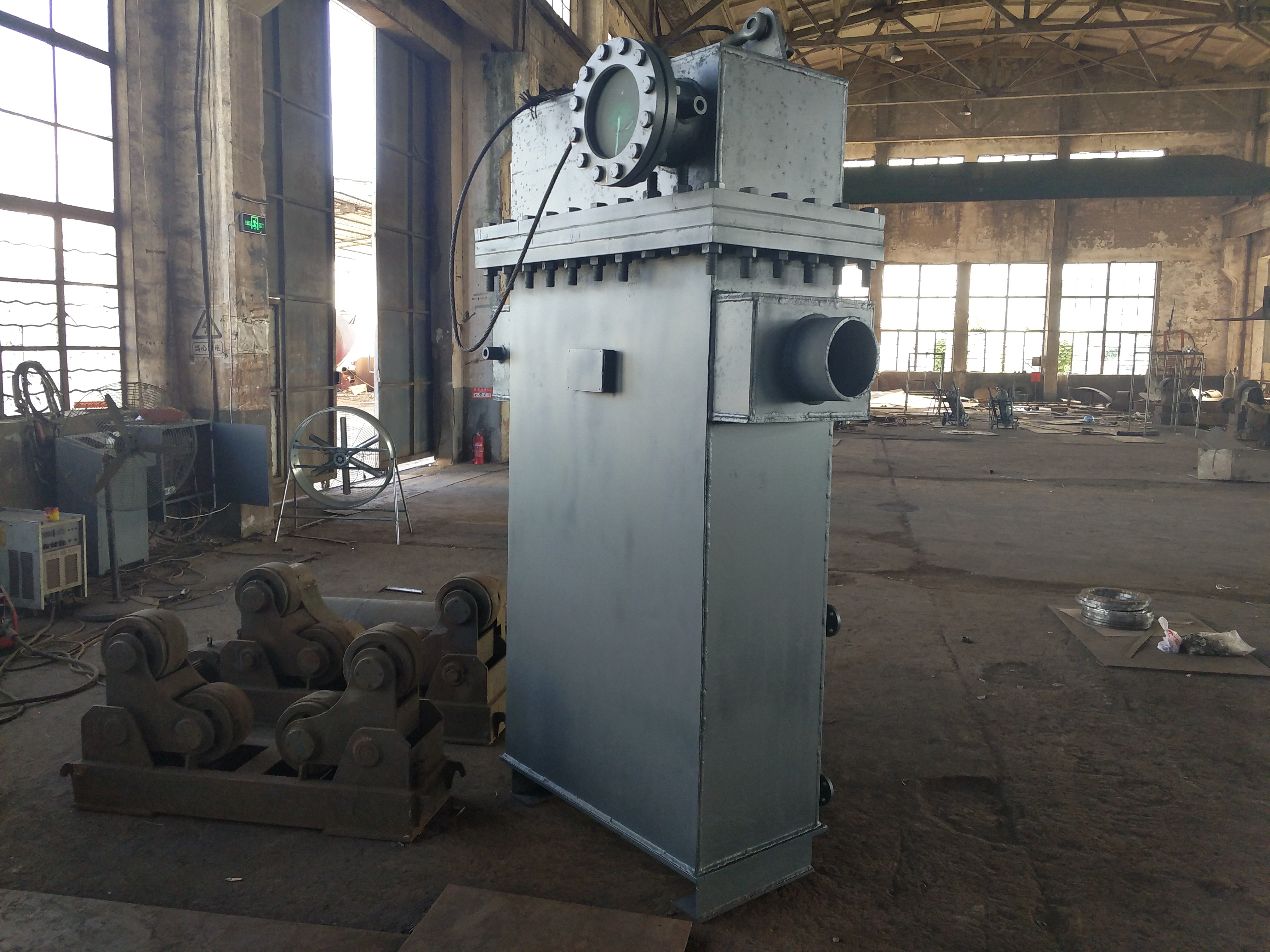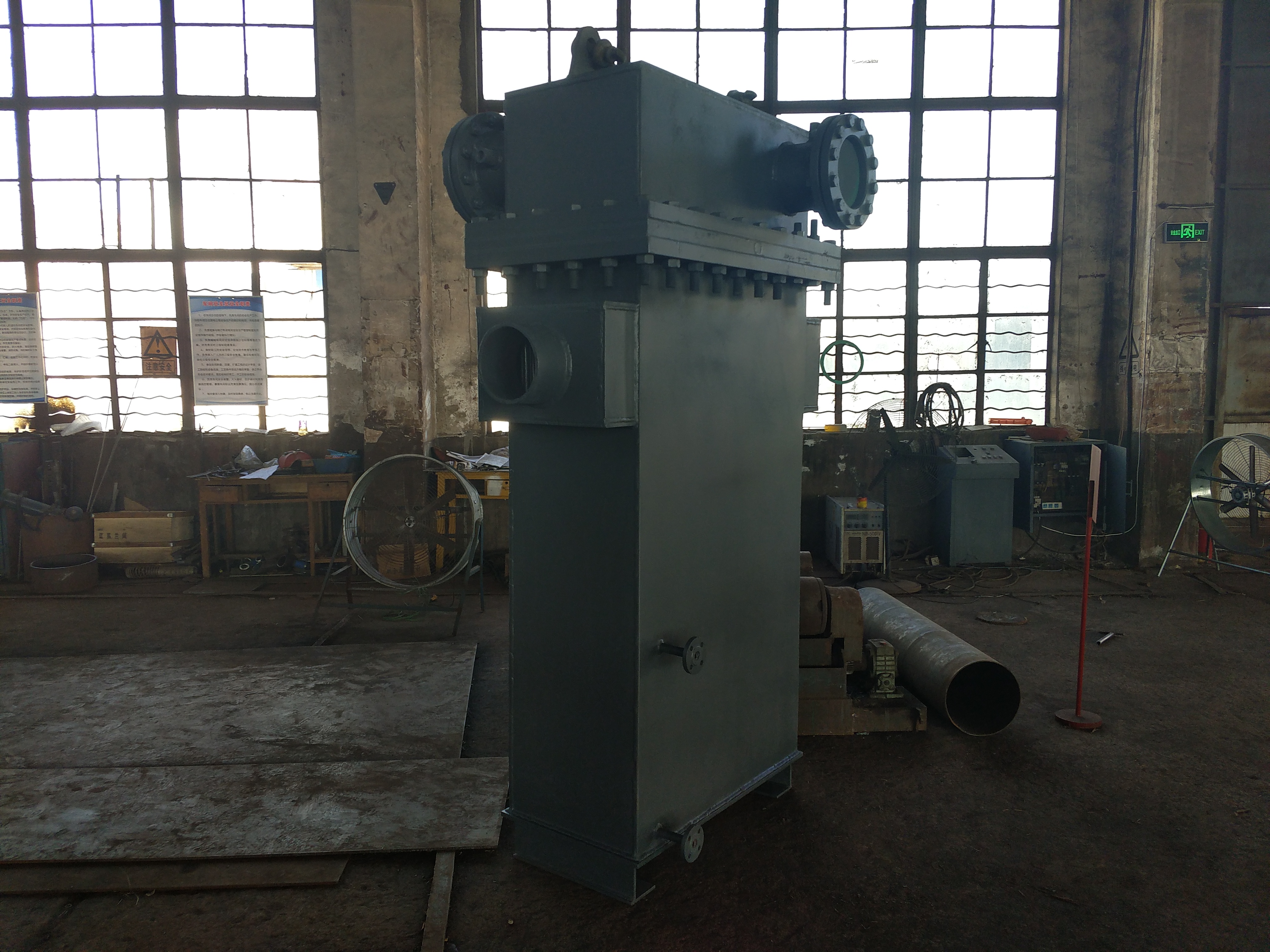 2、將汽封冷卻器吊出放在基礎上,調整水平和標高位置。